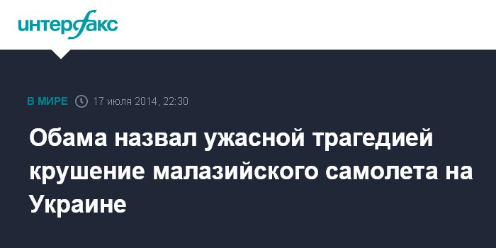 Москва. 17 июля. INTERFAX.RU - Крушение лайнера Malaysia Airlines - это "ужасная трагедия" заявил президент США Барак Обама.