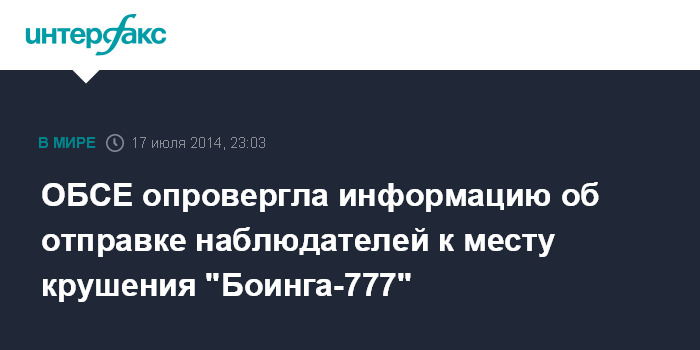 ОБСЕ опровергла информацию об отправке наблюдателей к месту крушения "Боинга-777"