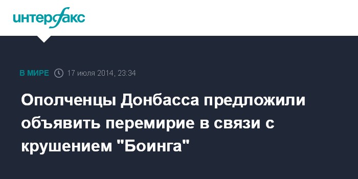 Ополченцы Донбасса предложили объявить перемирие в связи с крушением "Боинга"