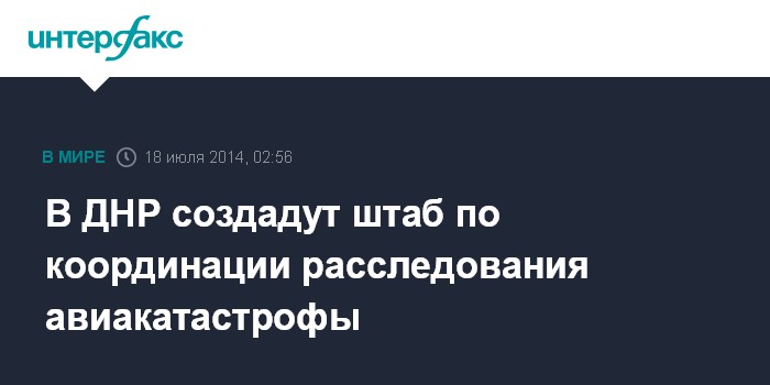 Москва. 18 июля. INTERFAX.RU - Власти самопровозглашенной Донецкой народной республики (ДНР) создадут штаб для координации расследования катастрофы авиалайнера компании Malaysia Airlines, сообщило представительство республики в Москве.