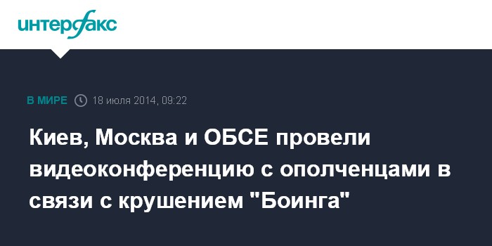 Киев, Москва и ОБСЕ провели видеоконференцию с ополченцами в связи с крушением "Боинга"