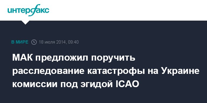 МАК предложил поручить расследование катастрофы на Украине комиссии под эгидой ICAO