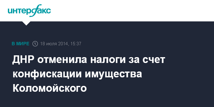 ДНР отменила налоги за счет конфискации имущества Коломойского