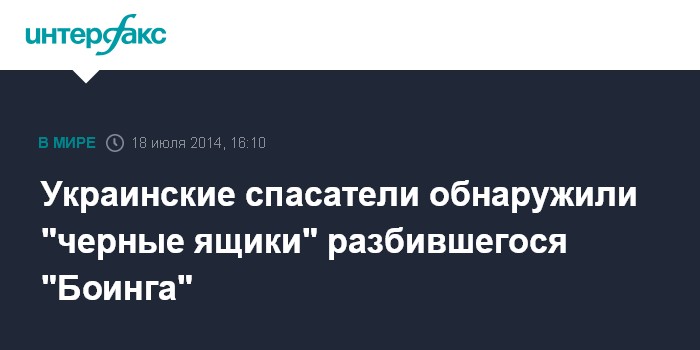 Москва. 18 июля. INTERFAX.RU - Сотрудники Государственной службы по чрезвычайным ситуациям (ГСЧС) Украины обнаружили на месте падения малайзийского самолета два бортовых самописца, но их местонахождение не называется, сообщил советник главы Донецкой обладминистрации Константин Батозский.