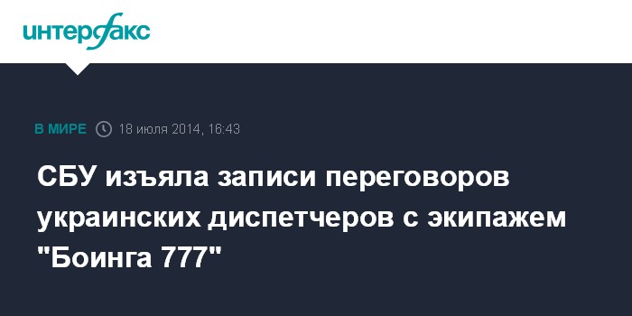 СБУ изъяла записи переговоров украинских диспетчеров с экипажем "Боинга 777"