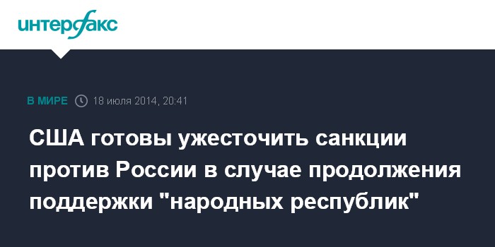 США готовы ужесточить санкции против России в случае продолжения поддержки "народных республик"
