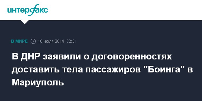 В ДНР заявили о договоренностях доставить тела пассажиров "Боинга" в Мариуполь