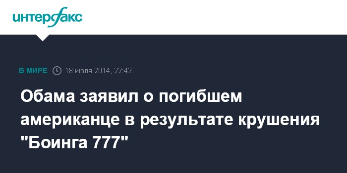 Обама заявил о погибшем американце в результате крушения "Боинга 777"