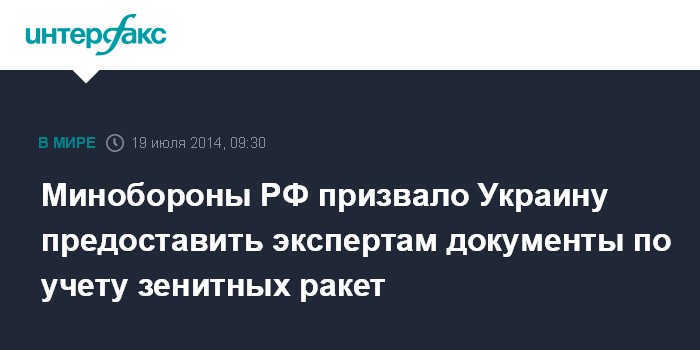Москва. 19 июля. INTERFAX.RU - Заместитель министра обороны РФ Анатолий Антонов призывает вооруженные силы Украины предоставить международным экспертам документы по учету ракет классов "воздух - воздух" и "земля - воздух" боекомплектов зенитно-ракетных комплексов.