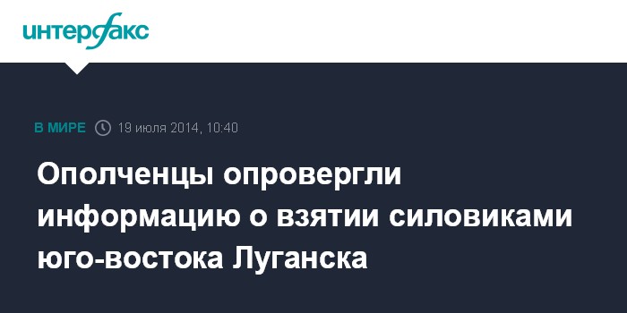 Москва. 19 июля. INTERFAX.RU - Пресс-служба самопровозглашенной "Луганской народной республики" (ЛНР) опровергла информацию о переходе под контроль украинской армии юго-восточной части Луганска. "Мы не подтверждаем эту информацию, юго-восточную часть города украинской армии взять не удалось", - сообщили "Интерфаксу" в пресс-службе в субботу.