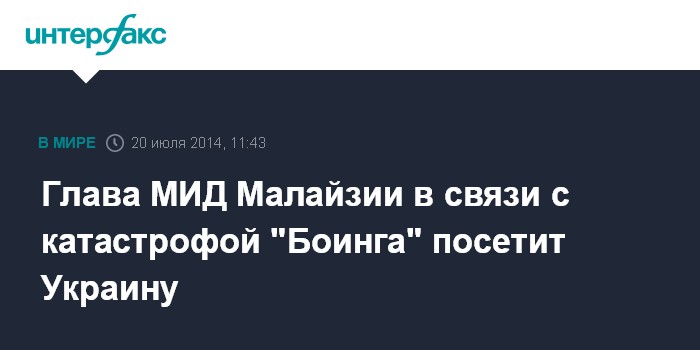 Глава МИД Малайзии в связи с катастрофой "Боинга" посетит Украину
