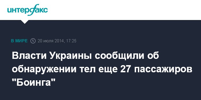 Москва. 20 июля. INTERFAX.RU - Украинский вице-премьер, министр регионального развития, строительства и ЖКХ Владимир Гройсман сообщил об обнаружении в Донецкой области еще 27 тел жертв авиакатастрофы.