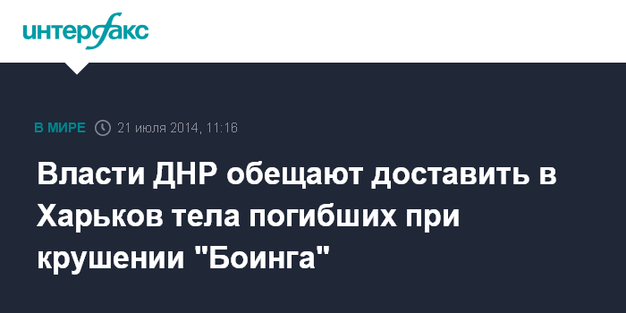Власти ДНР обещают доставить в Харьков тела погибших при крушении "Боинга"