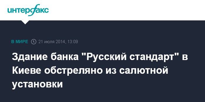 В ряде украинских СМИ сообщается, что "обстрелу" подвергся офис банка "Русский стандарт". В пресс-службе банка "Русский стандарт" агентству "Интерфакс-Украина" подтвердили эту информацию.
