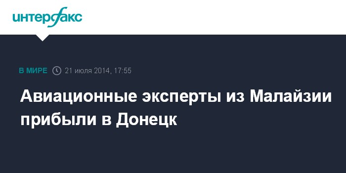 Москва. 21 июля. INTERFAX.RU - 12 экспертов по авиационной безопасности из Малайзии прибыли в Донецк, сообщает пресс-служба ДНР со ссылкой на премьер-министра самопровозглашенной республики Александра Бородая.