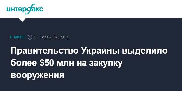 Правительство Украины выделило более $50 млн на закупку вооружения