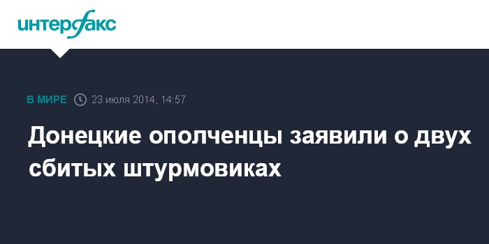 Москва. 23 июля. INTERFAX.RU - Донецкие ополченцы утверждают, что они подбили два украинских штурмовика в районе города Снежное.