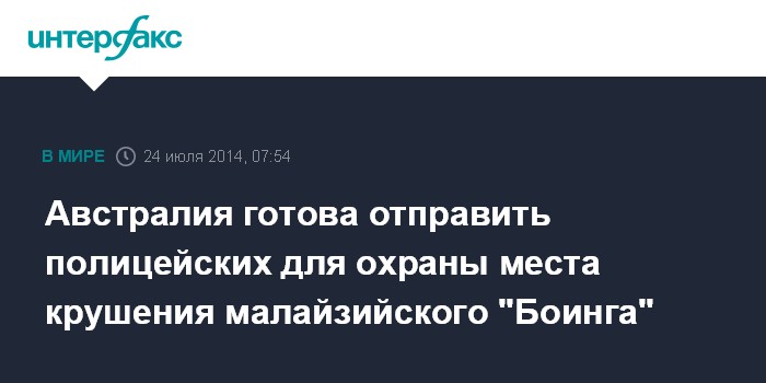 Москва. 24 июля. INTERFAX.RU - Правительство страны рассматривает возможность направления около 100 полицейских для участия в охране места падения "Боинга-777" Malaysia Airlines на территории Украины, сообщила газета The Australian.