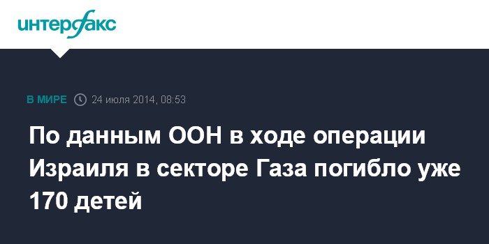 По данным ООН в ходе операции Израиля в секторе Газа погибло уже 170 детей