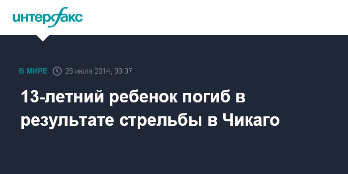 Москва. 26 июля. INTERFAX.RU - В Чикаго в результате стрельбы погиб 13-летний подросток, еще шесть человек получили ранения, сообщает Chicago Tribune.