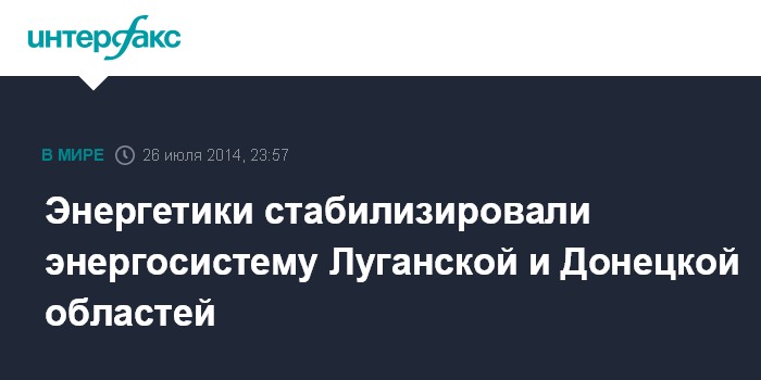 Москва. 26 июля. INTERFAX.RU - Энергетики "ДТЭК" Луганской ТЭС и "Укрэнерго" не допустили отключения всех потребителей электроэнергии в Луганской и Донецкой областях, сообщается в пресс-релизе компании "ДТЭК".