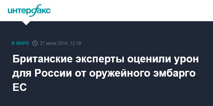 Британские эксперты оценили урон для России от оружейного эмбарго ЕС