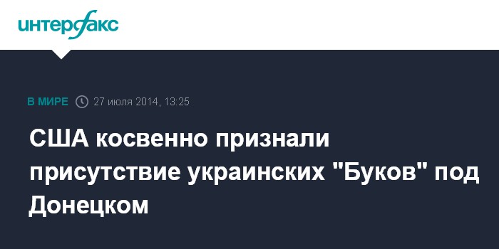 Москва. 27 июля. INTERFAX.RU - США фактически подтвердили нахождение украинских систем ПВО в районе Донецка, где был сбит 17 июля малазийский "Боинг", заявил "Интерфаксу" высокопоставленный источник в Минобороны России .