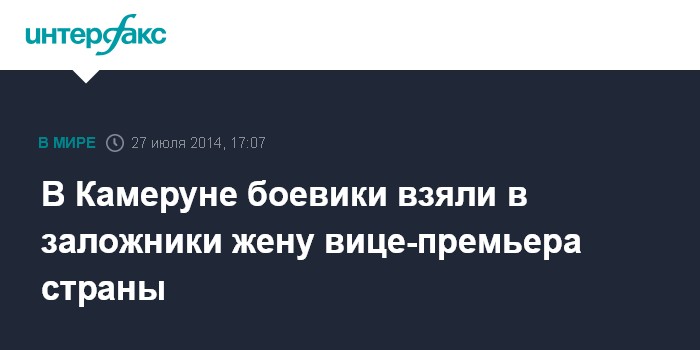 Москва. 27 июля. INTERFAX.RU - Группа боевиков из радикальной группировки "Боко харам" напала на город Колофата на севере Камеруна и похитила супругу вице-премьера страны Амаду Али, сообщает веб-сайт французской газеты Le Figaro. "Люди из "Боко харам" увели из дома супругу вице-премьера Али, однако сам он, благодаря телохранителям, сумел покинуть город", - сказал журналистам камерунский полковник Феликс Нджи Формеконг.