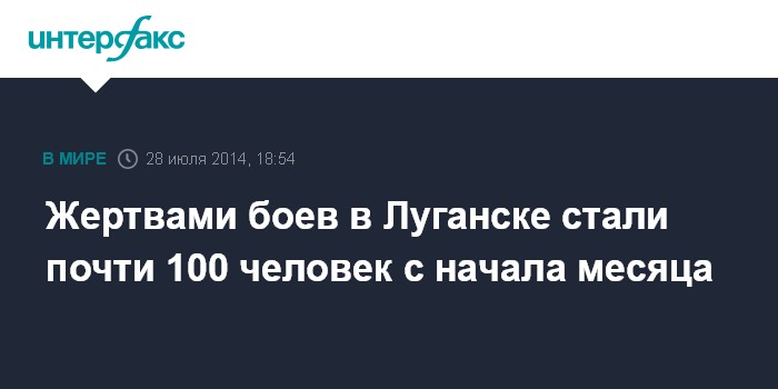 Москва. 28 июля. INTERFAX.RU - В Луганске с начала июля в результате боевых действий погибли 93 мирных жителя, в том числе один ребенок. Ранения получили 407 человек, сообщает Луганский горсовет.