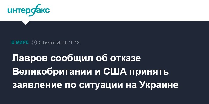 Москва. 30 июля. INTERFAX.RU - Великобритания и США во вторник заблокировали российскую инициативу о принятии заявления председателя Совбеза ООН с призывом выполнить резолюцию 2166 по Украине, заявил глава МИД РФ Сергей Лавров.