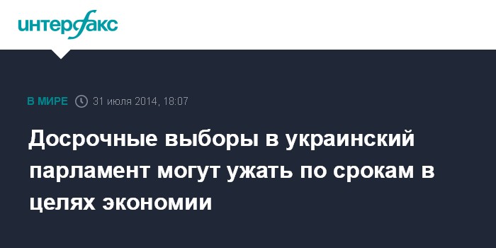 Москва. 31 июля. INTERFAX.RU - Срок проведения кампании по досрочным парламентским выборам на Украине может быть сокращен с 60 до 45 дней, о чем договорились президент Петр Порошенко, председатель Верховной Рады Александр Турчинов, премьер-министр Арсений Яценюк с председателями депутатских фракций и групп.