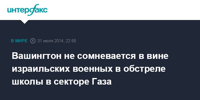 Москва. 31 июля. INTERFAX.RU - В Вашингтоне практически не сомневаются, что школа ООН в секторе Газа была обстреляна из израильского оружия, заявил в четверг представитель Белого дома Джош Эрнест.