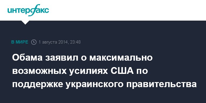 Москва. 1 августа. INTERFAX.RU - Администрация президента США Барака Обамы сделала все от себя зависящее, чтобы поддержать украинское правительство и помешать России и дальше вмешиваться во внутренние дела Украины, сообщил в пятницу американский президент.