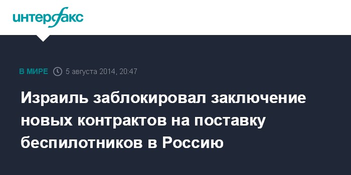 Москва. 5 августа. INTERFAX.RU - Министерство обороны Израиля обязало промышленников прекратить переговоры о заключении новых контрактов на поставки беспилотников в Россию, сообщает индийский интернет-портал Defenseworld.net, специализирующийся на военной тематике.