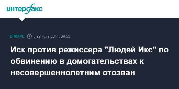 Иск против режиссера "Людей Икс" по обвинению в домогательствах к несовершеннолетним отозван