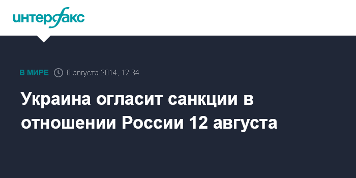 Украина огласит санкции в отношении России 12 августа