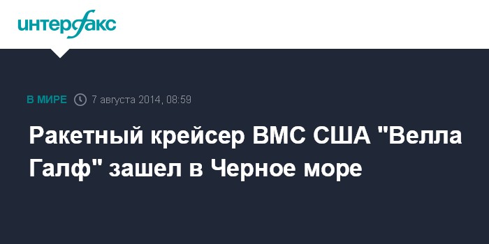 Москва. 7 августа. INTERFAX.RU – Американский ракетный крейсер "Велла Галф" в очередной раз зашел в Черное море, сообщили в четверг "Интерфаксу" в Главном штабе ВМФ.