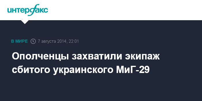 Ополченцы захватили экипаж сбитого украинского МиГ-29