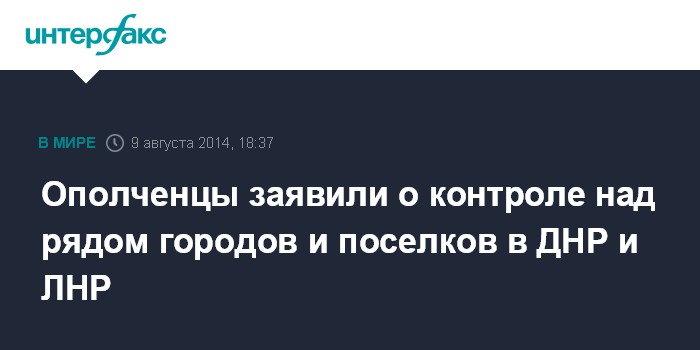 Москва. 9 августа. INTERFAX.RU - Ополченцы заявляют, что в течение субботы им удалось взять под контроль ряд населенных пунктов на территории непризнанных Донецкой и Луганской "народных республик" (ДНР и ЛНР). "Удалось выбить украинские войска из некоторых городов и поселков, в их числе населенный пункт Должанский (ЛНР, рядом с границей с РФ - ИФ). Сейчас ситуация нестабильна. Изменения могут наступить в любой момент", - рассказали "Интерфаксу" в штабе ополчения в Донецке.