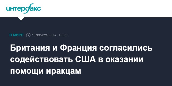 Британия и Франция согласились содействовать США в оказании помощи иракцам