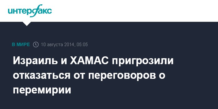 Москва. 10 августа. INTERFAX.RU - Участники переговоров в Каире, направленных на достижение перемирия в секторе Газа, пригрозили отказаться от участия в переговорах, сообщает BBC.