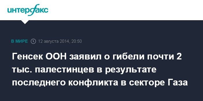 Москва. 12 августа. INTERFAX.RU - Жертвами израильской операции "Нерушимая скала" в секторе Газа стали почти 2 тыс. человек, большинство из них - мирные жители, заявил генсек ООН Пан Ги Мун на пресс-конференции во вторник.