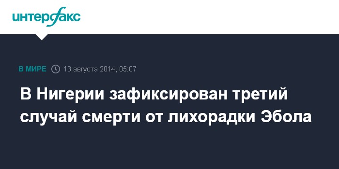 В Нигерии зафиксирован третий случай смерти от лихорадки Эбола
