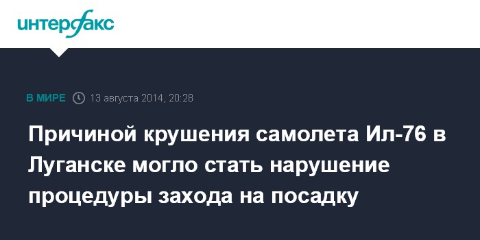 Москва. 13 августа. INTERFAX.RU - Генеральный прокурор Украины Виталий Ярема заявляет, что в рамках расследования крушения самолета Ил-76 в Луганске проверяется информация о возможном нарушении стандартов при заходе на посадку самолета.