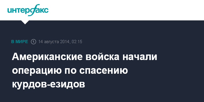 Москва. 14 августа. INTERFAX.RU - Пентагон заявил, что американские войска специального назначения вылетели к вершине горы Синджар на северо-западе Ирака, сообщило агентство Associated Press.