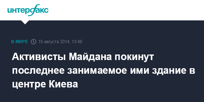 Москва. 15 августа. INTERFAX.RU - Активисты Майдана в пятницу начали освобождать последнее здание, которое они до сих пор занимали в центре Киева с декабря прошлого года - Октябрьский дворец на улице Институтская, сообщатся на сайте "5 канала".