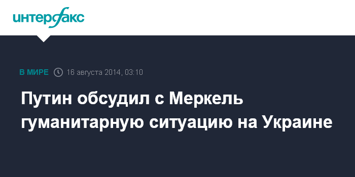 "Стороны выразили озабоченность в связи с усугубляющейся гуманитарной катастрофой на Украине. Путин информировал о ходе реализации в тесной координации с Международным комитетом Красного Креста российской инициативы по оказанию гуманитарной помощи гражданскому населению в зоне внутриукраинского военного конфликта", - отмечается в документе.