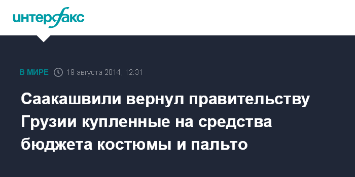Несколько дней назад Главная прокуратура Грузии обвинила М.Саакашвили в том, что он за счет бюджетных денег купил себе восемь костюмов и кашемировое пальто.