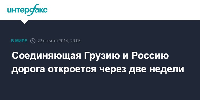 Москва. 22 августа. INTERFAX.RU - Военно-Грузинская дорога, участок которой был разрушен вечером 20 августа сошедшим в Дарьяльское ущелье оползнем, будет открыта максимум через две недели, заявил премьер-министр Грузии Ираклий Гарибашвили.