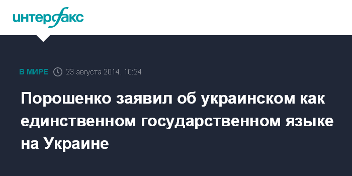 Москва. 23 августа. INTERFAX.RU - Президент Украины Петр Порошенко вновь заявил, что единственным государственным языком в стране останется украинский.